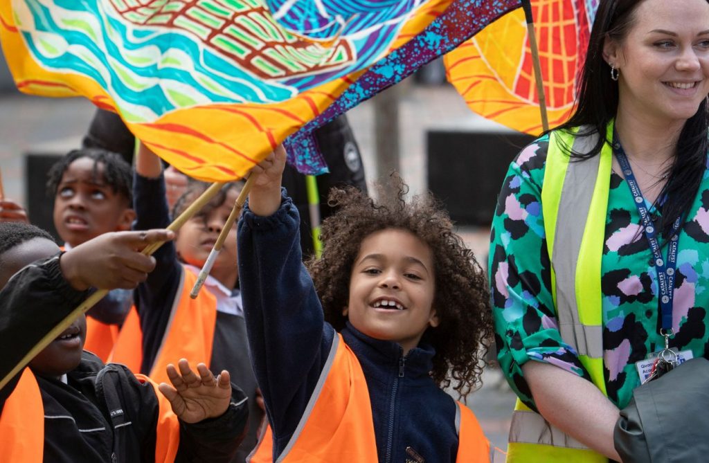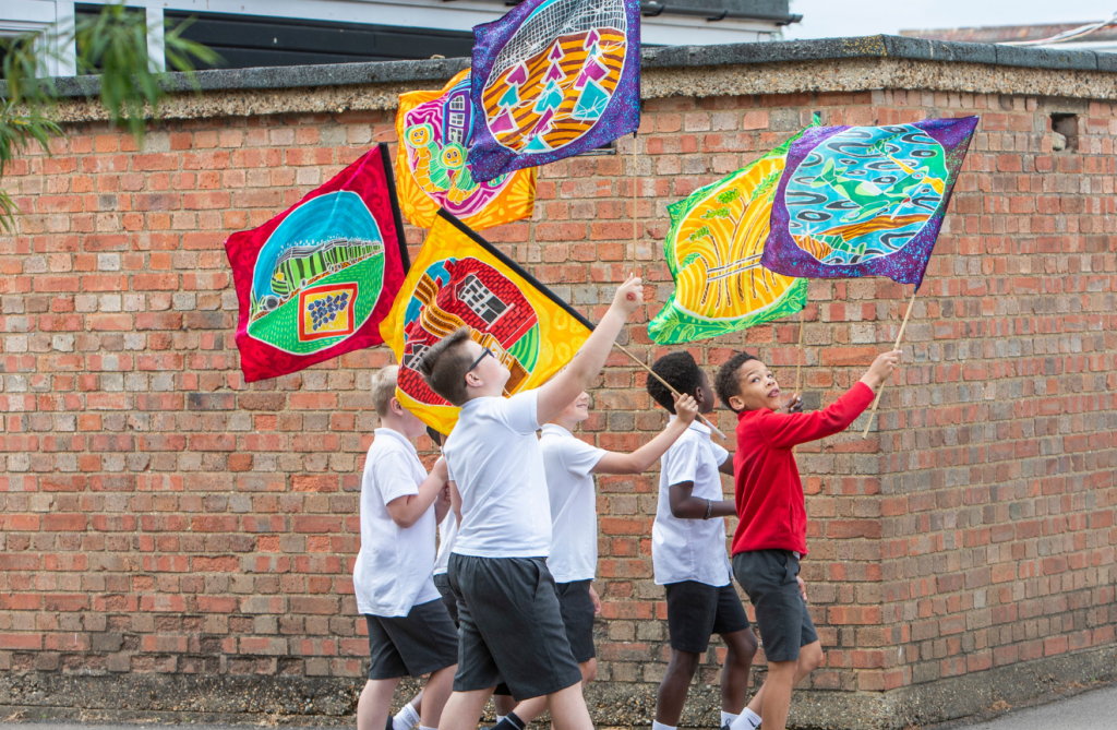 T100 Young Ambassadors from East Tilbury Primary and William Edwards School have been devising their own creative responses to this year’s Festival theme across this school year working closely with Jemma MacDonnell from The Paper Birds and the T100 team. The resulting performances and installations will be shared to school and local communities via in-school events during the festival, as well as for Place at the Table: Celebrating Our Community on Saturday 6 June.